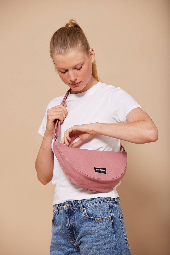 In Form eines Halbmonds liegt die Andrea-Tasche zwischen Bauchtasche und Umhängetasche. Super praktisch mit ihrer Öffnung oben und der Reißverschlusstasche hinten. Ihr Look passt sich allen Wünschen an. Man kann sie kurz oder lang über der Schulter, vorne oder hinten tragen.