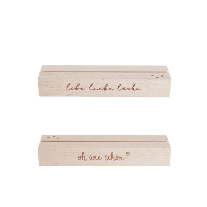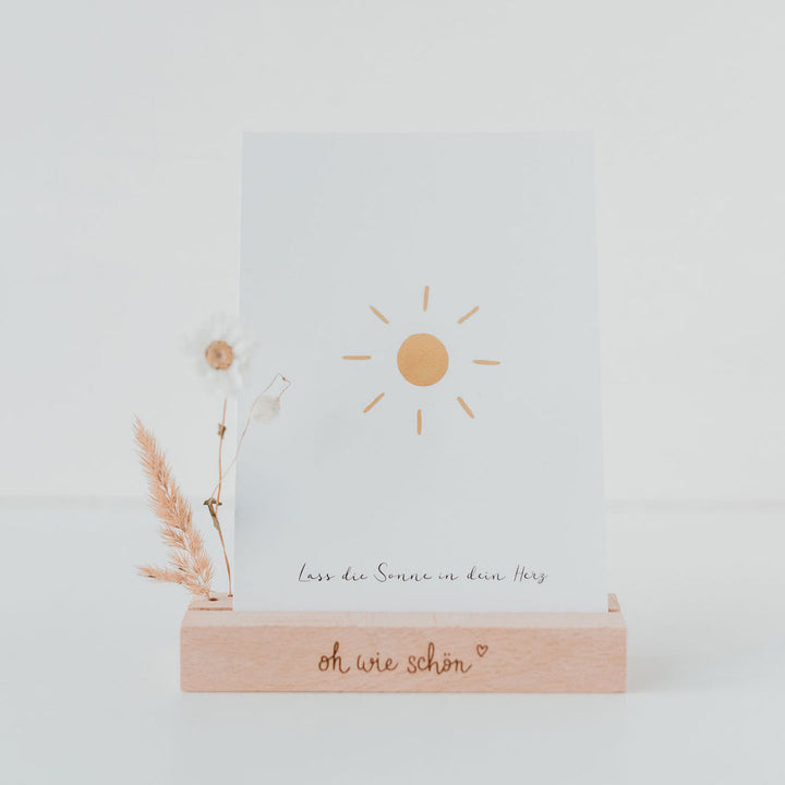 Mit unseren Karten- und Blumenhaltern "Oh wie schön" bringst du Ordnung und Freude in deinen Alltag. Präsentiere deine liebsten Fotos, Postkarten, Notizen und andere schöne Erinnerungsstücke auf stilvolle Weise. Die Halter aus hochwertigem Buchenholz bieten Platz für Karten im Format DIN A6 (Hochformat) und verfügen über zusätzliche Aussparungen für Trockenblumen. So zauberst du im Handumdrehen ein individuelles Deko-Highlight für dein Zuhause.