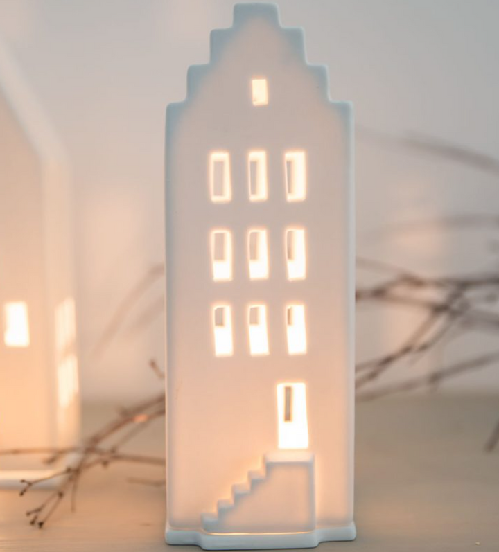 Das Lichthaus "Giebeldach" von Räder Design bringt mit seinem handgefertigten Design den Charme traditioneller Häuser in dein Zuhause. Aus hochwertigem, unglasiertem Porzellan gefertigt, verbreitet dieses Häuschen ein sanftes, wohnliches Licht, das dunkle Abendstunden erhellt und eine gemütliche Atmosphäre schafft. Mit seinem filigranen Design ist es nicht nur ein dekoratives Highlight, sondern auch eine Hommage an die traditionelle Baukunst.