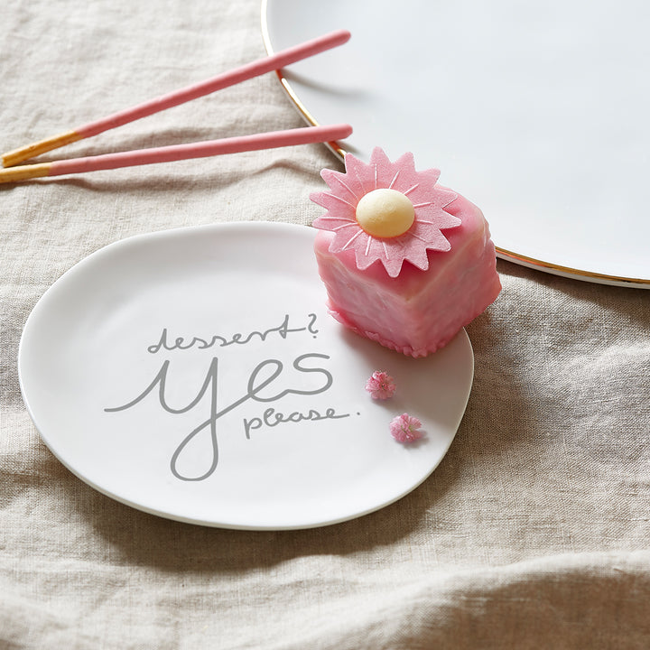 • Dekorative Botschaft durch Schriftzug „Dessert? Yes, please“ als zentrales Designmerkmal