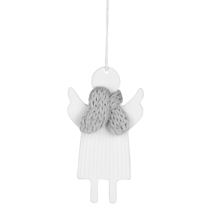 Der Engel wirkt in elegantem Weiß/Grau und überzeugt durch seine schlichte Gestaltung, die garantiert mit Ihrem Dekor harmoniert.