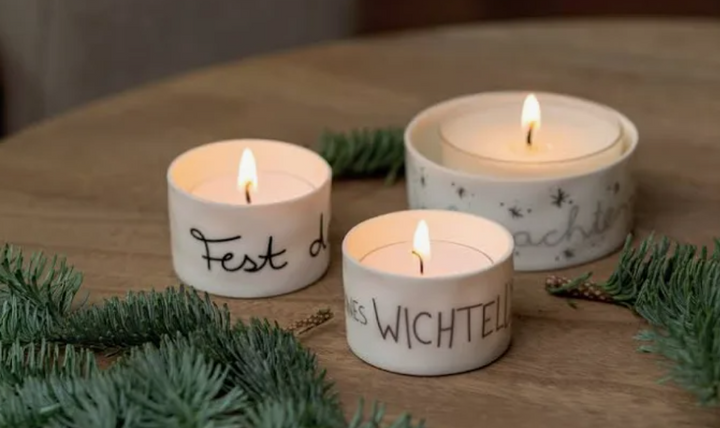 Verleihe deinem Zuhause festlichen Glanz mit dem Winterlicht „kleines Wichtellicht“ von Räder. Das edle Porzellan-Teelicht mit feinem Schriftzug schafft eine warme, stimmungsvolle Atmosphäre zur Advents- und Weihnachtszeit. Ideal als Dekoration auf dem Tisch, Fensterbrett oder als liebevolles Geschenk.