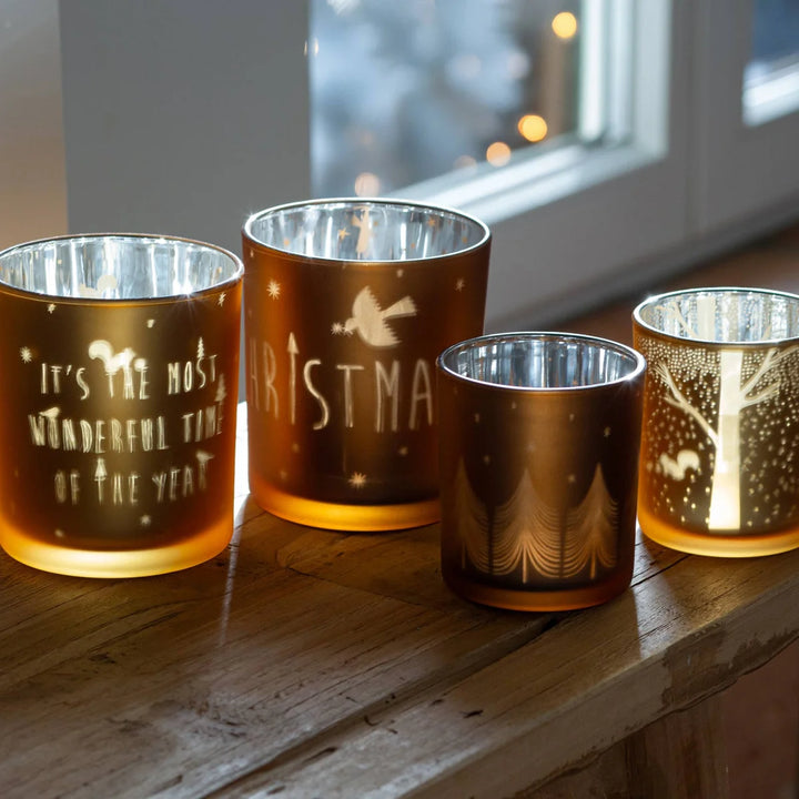 - Hochwertiges Design: Gefrostetes Glas und goldene Innengestaltung sorgen für eine edle, winterliche Optik.